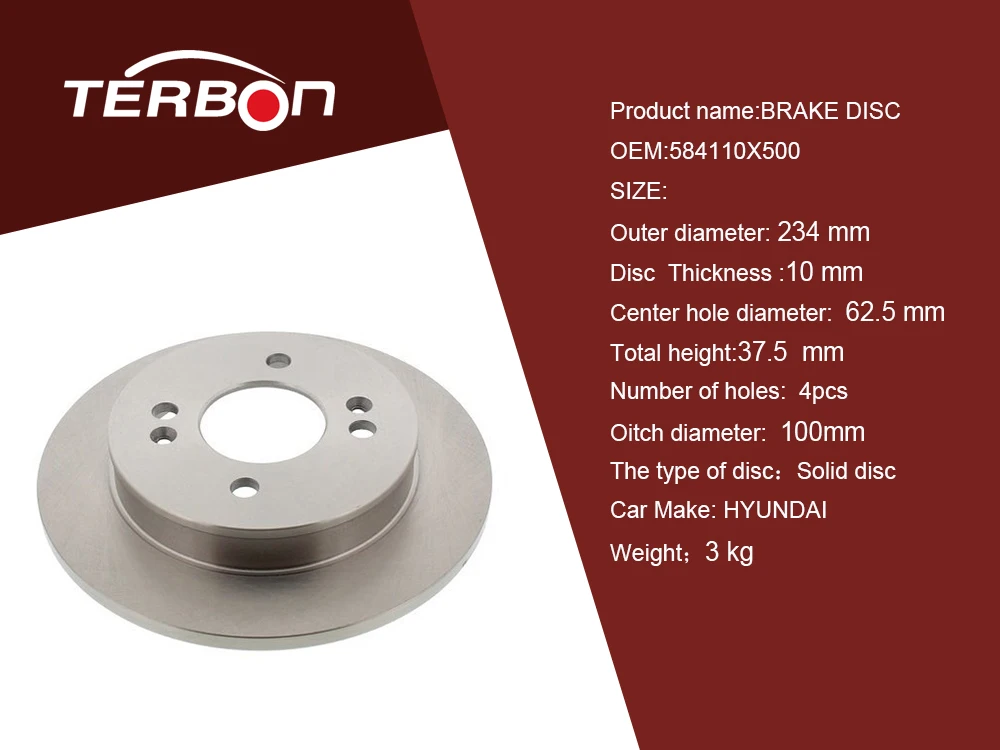 58411-0X500 Terbon Wholesale Auto Car Brake System Parts 234mm Brake Disc Rear Axle Solid Disk Brake Rotors 58411-07500 for KIA$ 59