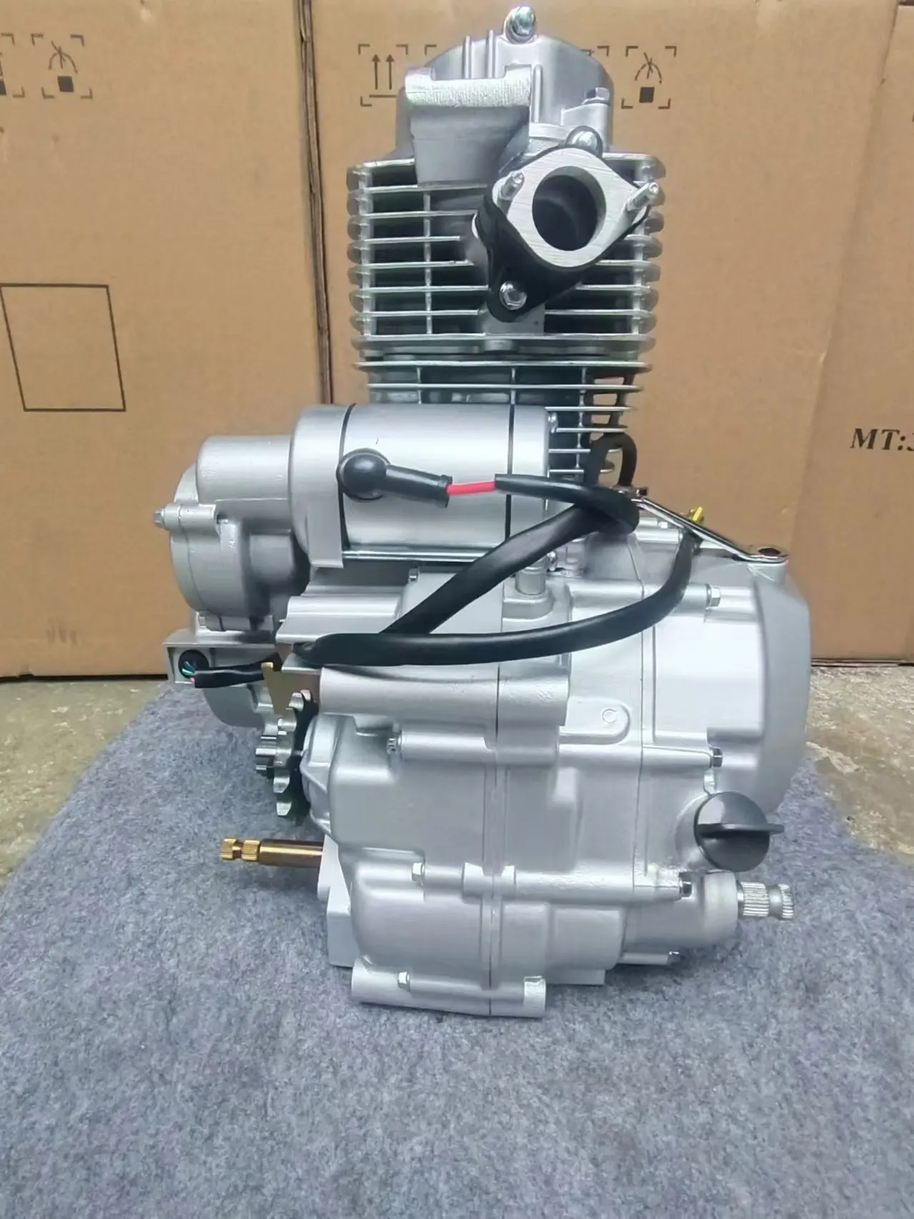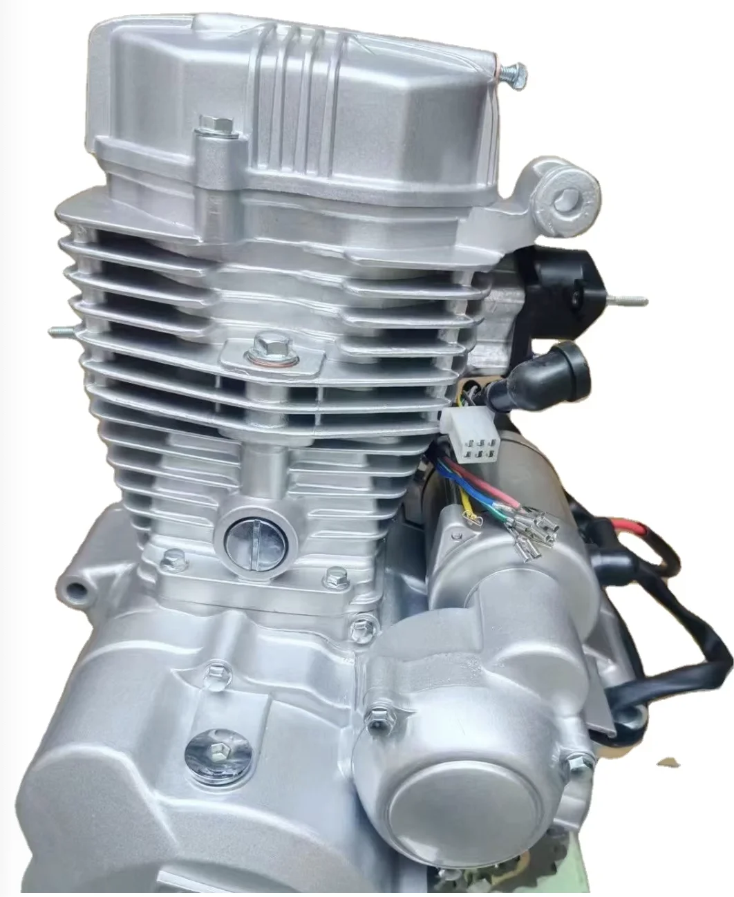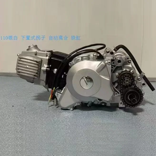 This air cooling AX100 complete engine in silver white is designed for reliable motorcycle performance. It features an automatic clutch system for smooth, user-friendly operation, making it suitable for riders seeking a straightforward and efficient engine replacement or upgrade. The classic silver white finish offers a clean, polished look that complements a variety of bike styles. Built as a complete unit, this engine is ready for installation, providing a comprehensive solution for your project. Its air-cooled design ensures effective thermal management during operation. This product represents a balance of practical function and classic aesthetics for enthusiasts and mechanics alike.