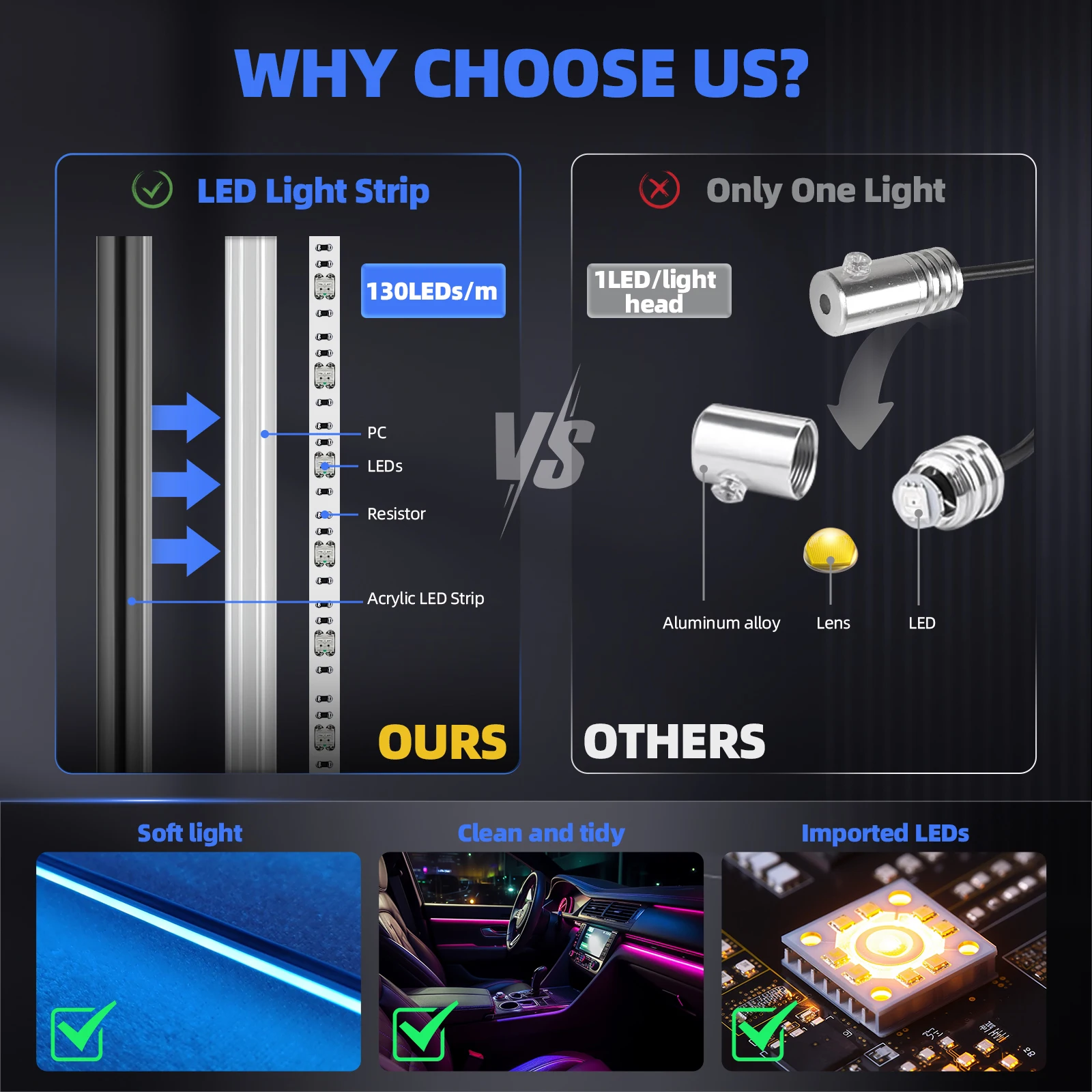 Transform your vehicle's interior with this high-quality LED ambient multicolor car light strip. Featuring a vibrant 64-color RGB spectrum, it creates a captivating symphony of light that enhances any drive. The easy-to-install fiber optic design offers versatile placement options for a personalized glow throughout your car's cabin. Enjoy dynamic lighting effects that sync perfectly with your music thanks to the built-in sound activation mode. Control the colors, patterns, and brightness effortlessly with the included remote. The smooth chasing light effects and multiple static color options allow you to set the perfect mood for every journey. Crafted for durability and brilliant illumination, this kit provides an exceptional upgrade to your auto interior. It delivers a premium, immersive lighting experience that is both fun and functional, offering great value for an unforgettable ambiance on the road.