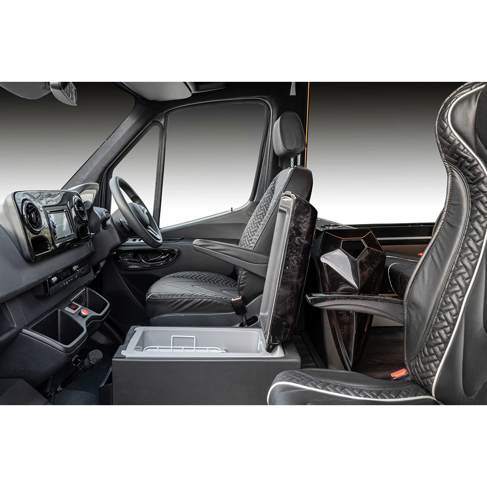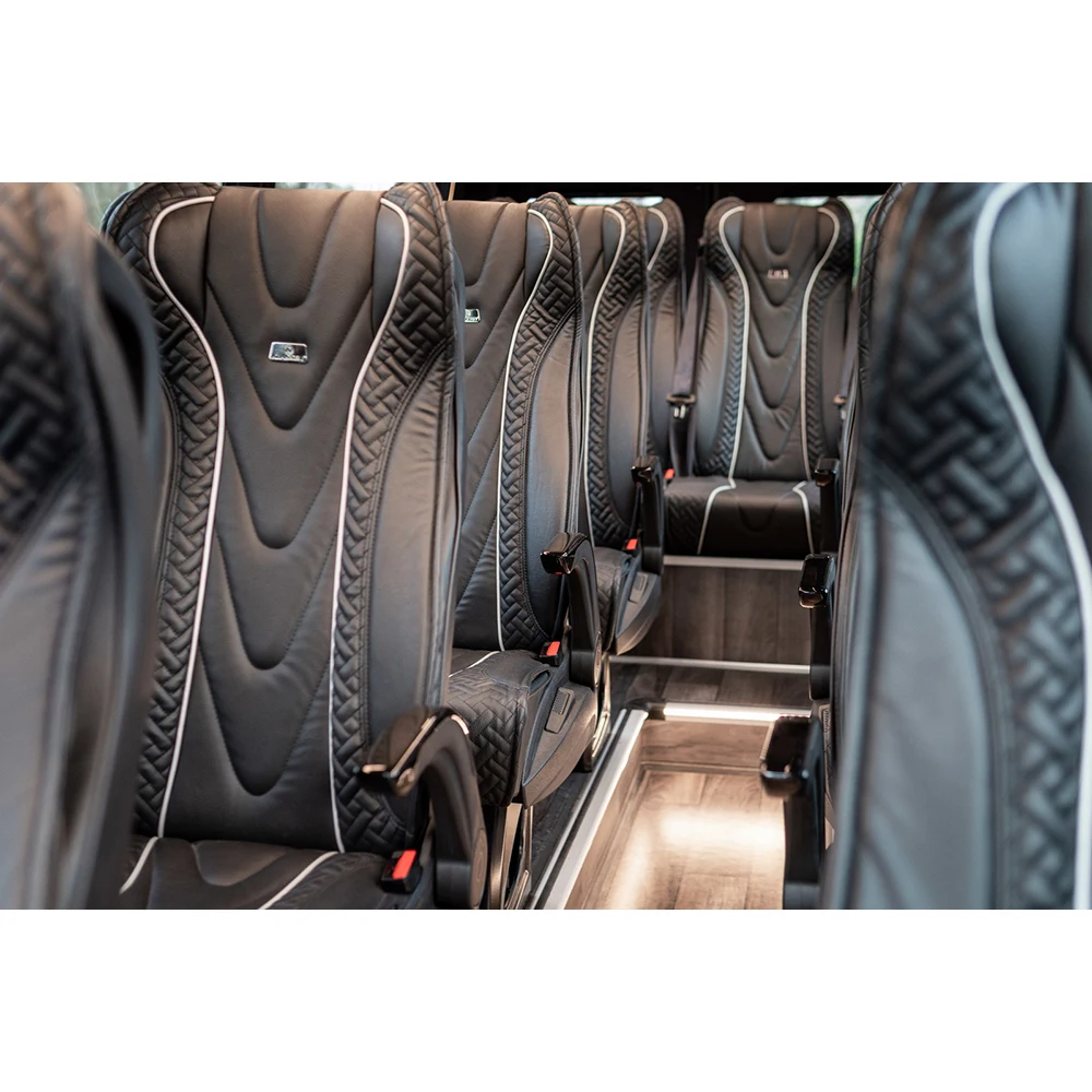 Elevate the comfort and style of your Mercedes Sprinter with these luxury front seats. Designed to provide superior support and a premium feel, they feature a thick, durable skin cover that combines elegance with long-lasting resilience. The inclusion of a small folding chair adds versatile functionality, perfect for additional passenger seating or convenient storage. Crafted for a direct fit in Sprinter models, these seats transform the driver and passenger experience with their plush cushioning and refined appearance. The robust construction ensures they withstand daily use while maintaining their sophisticated look. Ideal for van conversions, luxury transports, or upgrading a commercial vehicle. Offering an exceptional balance of luxury and practicality, this set enhances any Sprinter interior. Experience enhanced comfort and a noticeable upgrade in your vehicle's ambiance with these premium bus passenger seats.