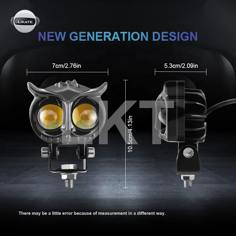 Illuminate your ride with our new design dual-color LED motorcycle fog lights. These auxiliary spot lights feature a modern aesthetic with a durable housing built to withstand the elements. The dual-color LED output provides enhanced visibility, allowing you to switch between a focused spot beam for distance and a wider fog pattern for adverse conditions. Easy to install on most motorcycles, these lights serve as a crucial safety upgrade for night riding or poor weather. They offer a significant improvement over standard lighting, increasing your presence on the road and illuminating your path more effectively. Constructed from quality materials for reliable performance, this set delivers excellent value. Upgrade your motorcycle's lighting system with these powerful and stylish LED auxiliary lights.